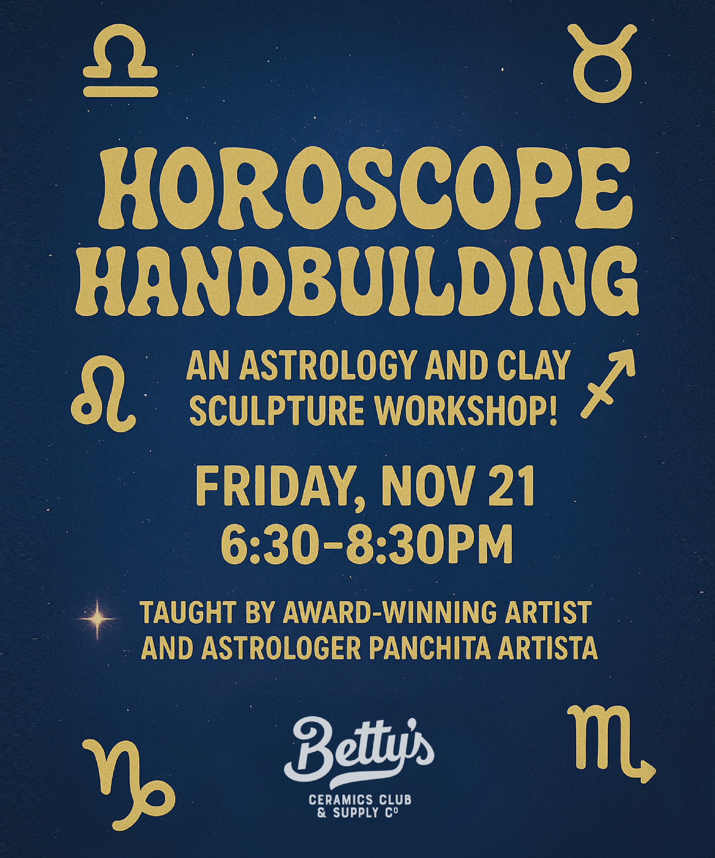 SUNDAY SHORTS 4-WEEK CLASS STARTS NOV 30 FALL 2 CLASSES - LAST CHANCE HERE FALL SPECIALS SSR WHEEL & HANDBUILDINGTRY NIGHT FUNDRAISER HERE HOROSCOPE HANDBUILDING SIGN UP HERE TUFTING INFO HERE COMMUNITY DAY REGISTRATION HERE SUBscribe for more info Sign up with your email address to receive news, class schedules and program updates. Email Address Sign Up We respect your privacy.We are located at 224 9th Street Jersey City NJ 07302info@bettysceramicsclub.com Thank you! Open Studio Hours